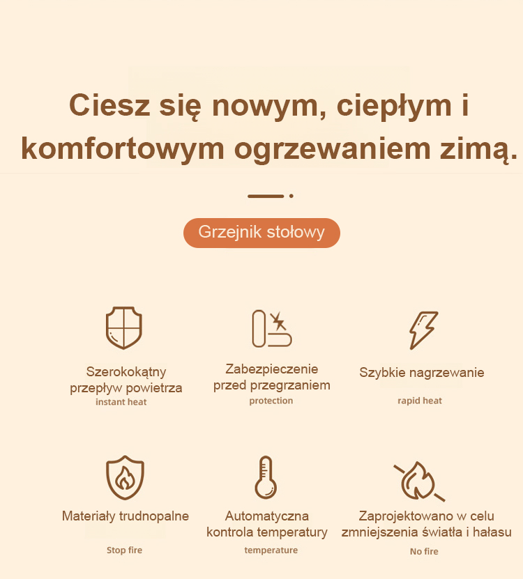 🔥W chwili naciśnięcia przycisku, wybucha potężna fala ciepła. Nie trzeba długo czekać; zanim chłód zdąży zareagować, zostajesz całkowicie otulony delikatnym ciepłem.🛡️ Wyposażony w liczne wbudowane czujniki bezpieczeństwa, natychmiast wstrzymuje pracę w przypadku przegrzania obudowy i automatycznie wyłącza zasilanie w przypadku przypadkowego przewrócenia. Zagrożenia bezpieczeństwa są całkowicie wyeliminowane, zapewniając bezstresowe ciepło.🔥🎁Zimowa Oferta Specjalna! Ciepło i energooszczędność! Kup drugi egzemplarz za jedyne 110 zł więcej! Zabierz go do domu już teraz!