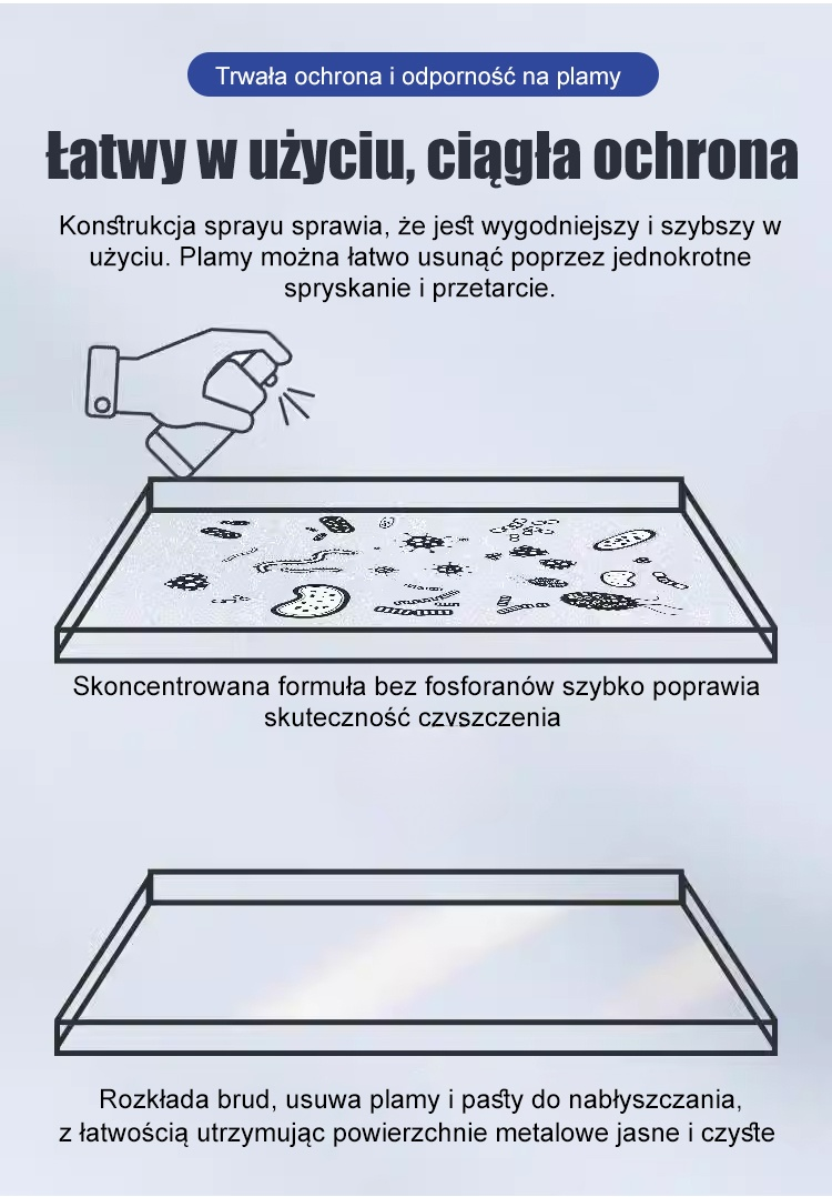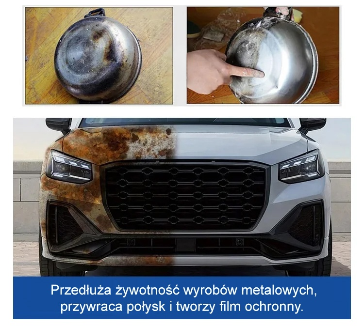 ⏱️🪄 Błyskawiczne działanie: Technologia wysokiej penetracji sprawia, że rdza znika w kontakcie z preparatem, przywracając chłodny połysk. 🛡️💎 Bezpieczna formuła: Brak składników korozyjnych pozwala na dokładne odrdzewianie przy jednoczesnym zachowaniu tekstury metalu. 🚧🔒 Bariera ochronna: Pozostawia mikronową powłokę odporną na warunki atmosferyczne, która izoluje wilgoć i zapobiega powrotowi rdzy. 🖐️💨 Wygoda użycia: Pojemność 500ml z precyzyjnym atomizerem sprawia, że konserwacja jest dziecinnie prosta. 🌍🍃 Przyjazny dla otoczenia: Nietoksyczny, bez drażniącego zapachu. Bezpieczny zarówno w warsztacie, jak i w domowej kuchni czy łazience.
