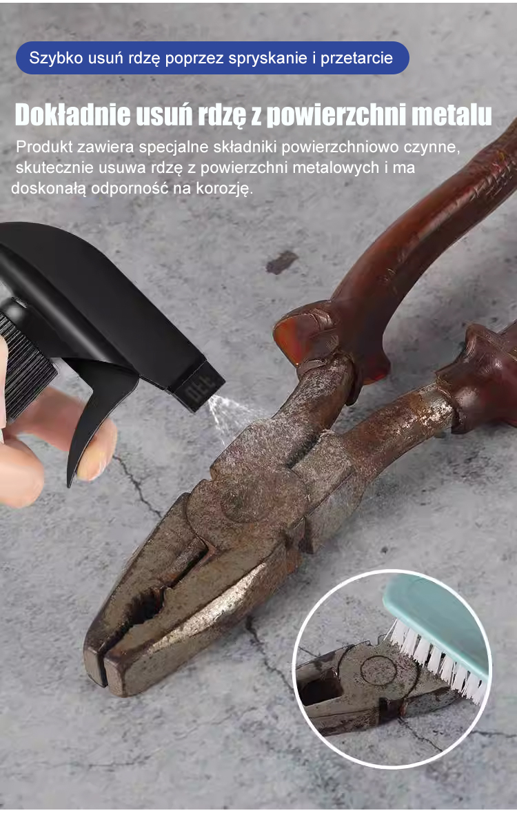 Spryskaj i lśnij ✨JS-【Szybki odrdzewiacz】 Skuteczny odrdzewiacz do stali💎 Szybko usuwa warstwy utlenione, przywracając metalowi jego dawny blask.