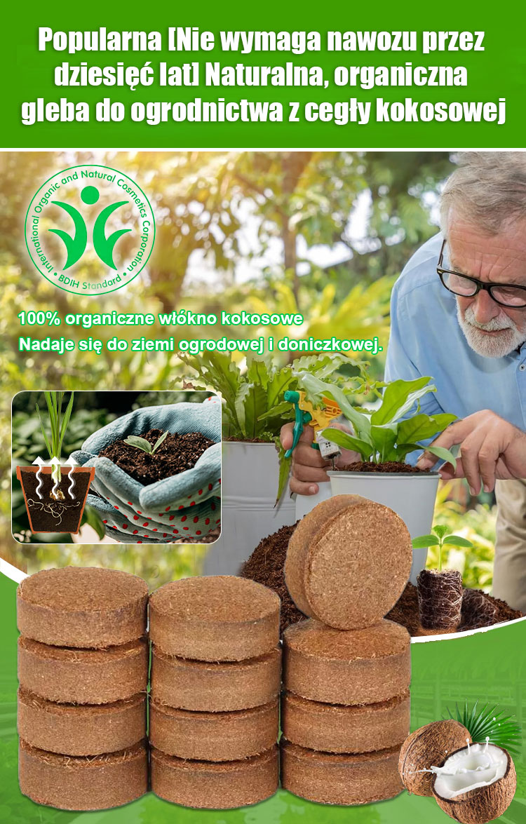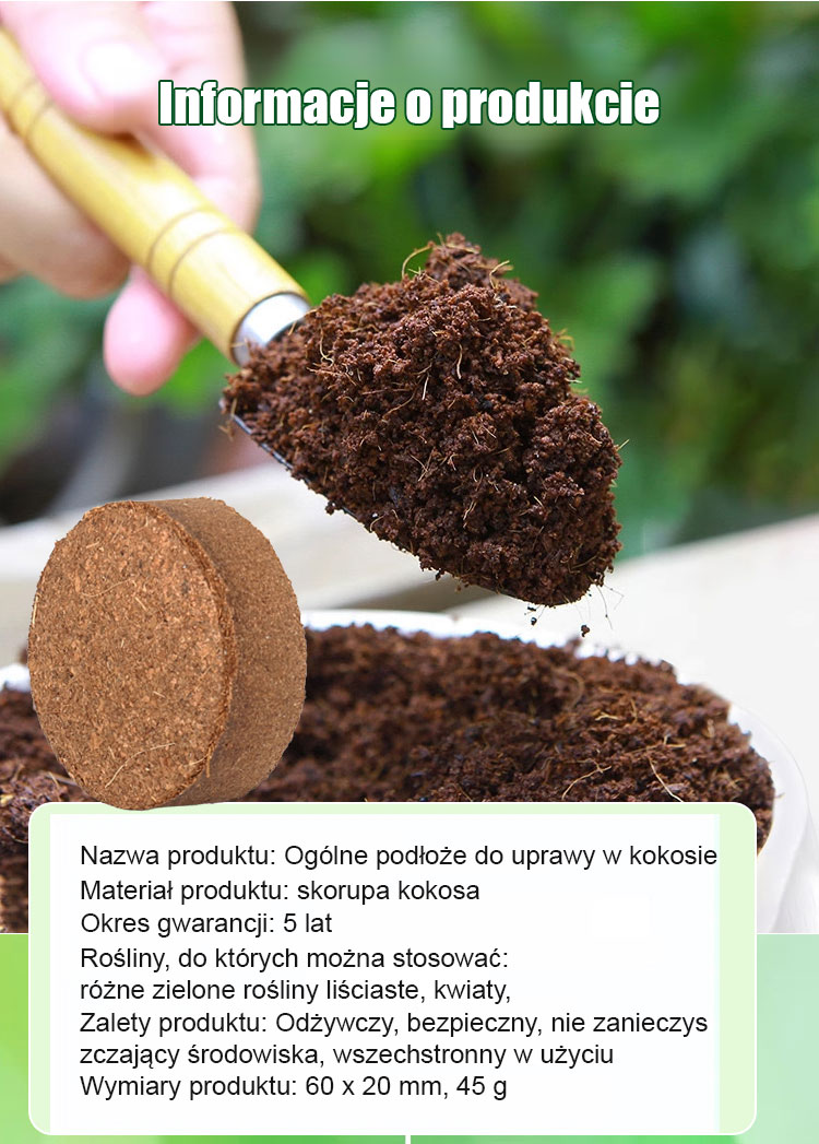 🌴 naturalne włókno kokosowe – bezpieczne i ekologiczne💧 Szybko pęcznieje – 1 kostka = 15 litrów podłoża⏳ Długotrwałe odżywianie przez 10 lat – bez częstego nawożenia🌿 Dobrze utrzymuje wilgoć – korzenie swobodnie oddychają🥕 Do wszystkich warzyw: pomidory, papryka, sałata, truskawki🪴 Do użytku wewnątrz i na zewnątrz – balkon, ogród, szklarnia🎁 30 szt. 248 zł – najlepsza oferta dla ogrodników