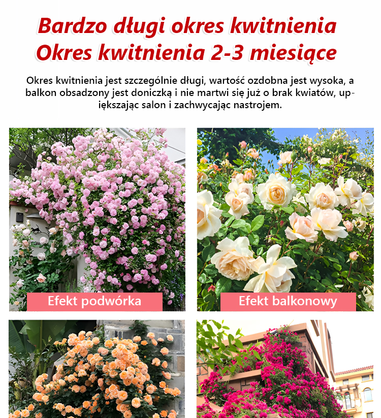 Całoroczne kwitnienie nasiona róż pnących🌸 Kwitnie przez cały rok – balkon i ogród zamienia w morze kwiatów🧗‍♀️ Naturalne pnącze – cała ściana staje się obrazem